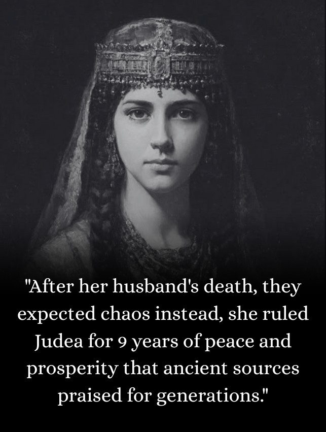 After her husband’s death, they expected chaos—instead, she ruled Judea for 9 years of peace and prosperity that ancient sources praised for generations.