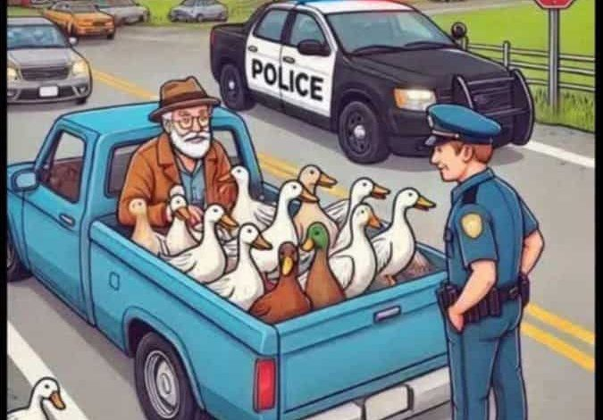 A policeman pulls over an elderly man driving a pickup truck, the bed overflowing with ducks. The officer says sternly, “Sir, you can’t have a flock of ducks wandering around downtown. Take them to the zoo immediately!”