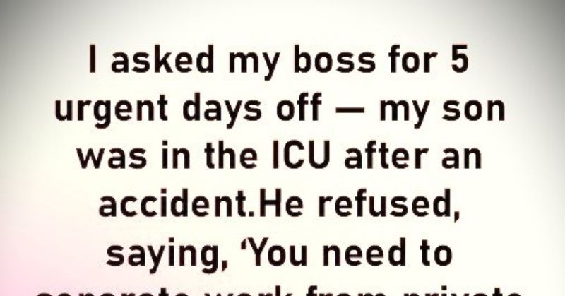 My son had been rushed in after a sudden accident, and when I asked my boss for five emergency days off, he refused—reminding me, with chilling detachment, to “keep work and personal matters separate.” I should have argued or walked out right then. But exhaustion can crystallize what truly matters. So the next day, I returned—not out of obedience, but out of quiet resolve.