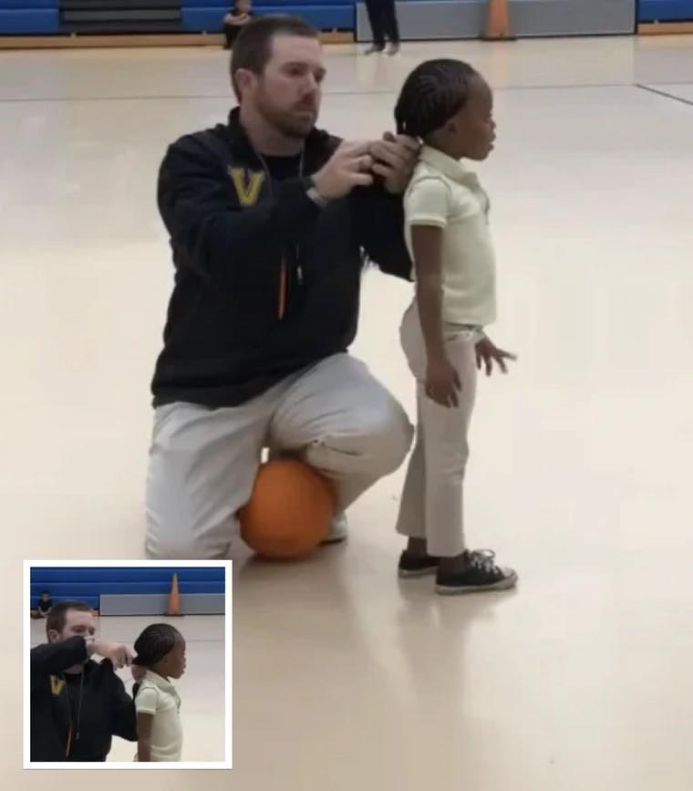 Jonathan Oliver, a physical education teacher at WG Nunn Elementary School in Valdosta, Georgia, has become an internet sensation after a video showing him assisting kindergartner Kristen Paulk with her hair went viral. The touching moment was captured by assistant kindergarten teacher Kandice Anderson and shared on Facebook with the caption, “When your job goes beyond teaching… #CoachO #LoveIt.”