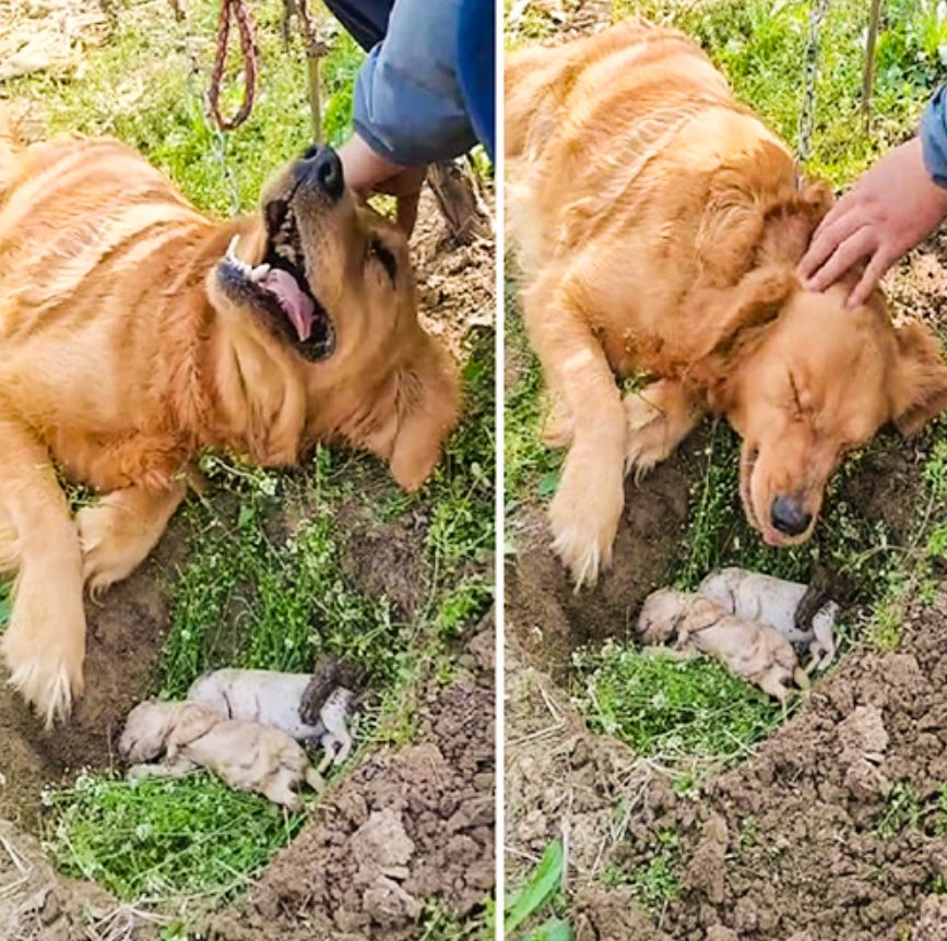 Heartbroken dog digs grave for her de…ad puppy after trying to revive it