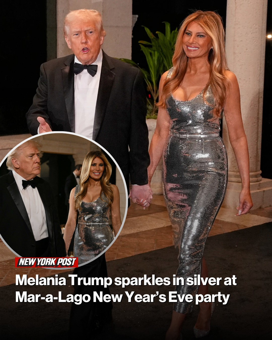 Melania Trump sparkles in silver at Mar-a-Lago New Year’s Eve party