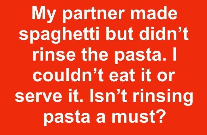 Your situation with your partner’s spaghetti shows just how divided people can be on this. You shared, “My partner made spaghetti but didn’t rinse the pasta. I couldn’t eat it or serve it. Isn’t rinsing pasta a must?” That reaction illustrates two very different approaches to pasta preparation.