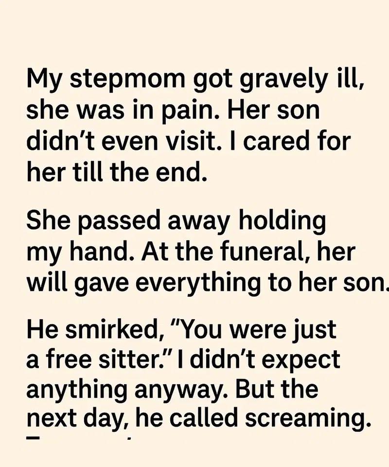 I never expected anything from her affairs, so I had no reason to anticipate surprises. The day after the service, I was still sorting through my thoughts when the phone rang. It was her son, his voice tense and shaken, carrying a mix of frustration and confusion that spilled out almost immediately.