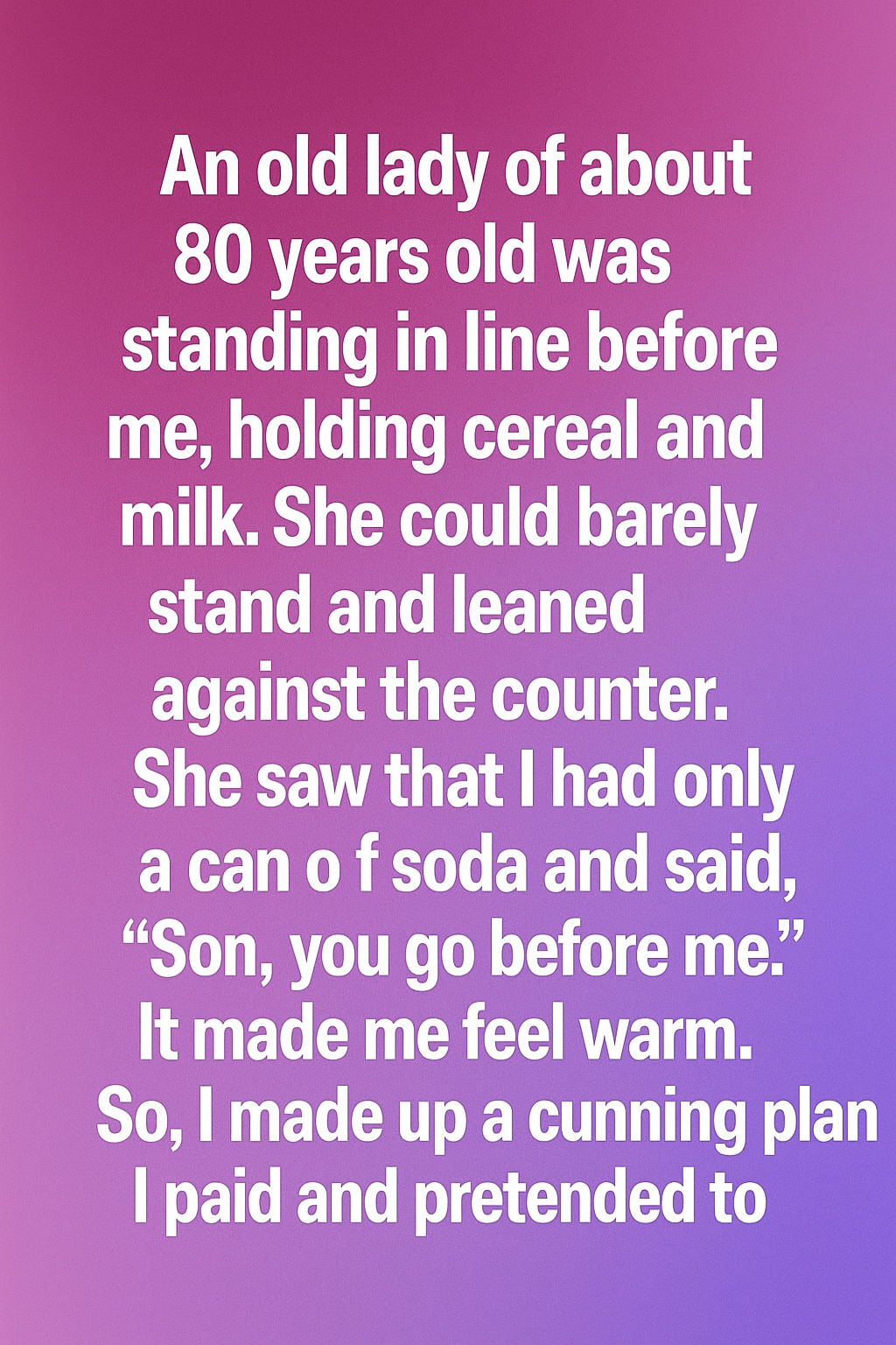 An old lady of about 80 years old was standing in line before me, holding cereal and milk. She could barely stand and leaned against the counter. She saw that I had only a can of soda and said, “Son, you go before me.” It made me feel warm. So, I made up a cunning plan I paid and pretended tofumble with my wallet as if I had forgotten something important. I stepped aside, letting the cashier scan my soda while I quietly watched the old woman from the corner of my eye. Her hands trembled slightly as she adjusted her grip on the box of cereal, and her smile lingered in a way that suggested kindness was a habit, not a decision. When my receipt printed, I didn’t leave. Continue reading…