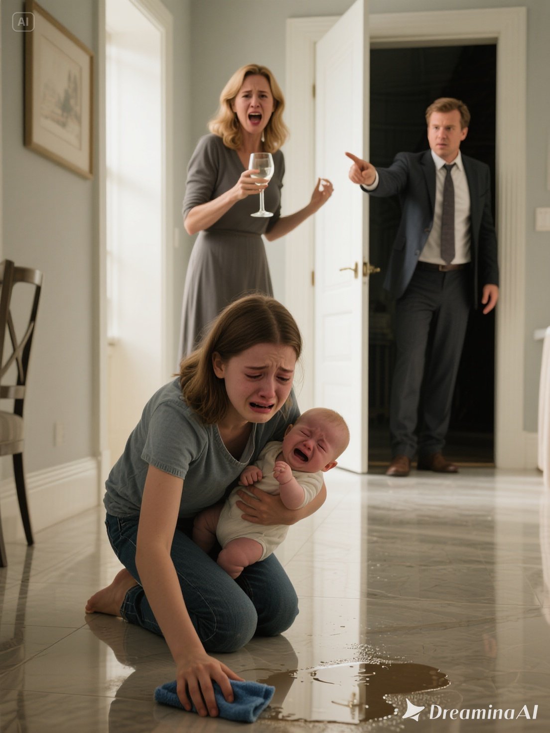 “You missed a spot, darling,” sneered her stepmother, Linda, slurring from the wine glass she held loosely in one hand. “And don’t forget the baby. He’s been crying for ten minutes already. Useless girl.”
