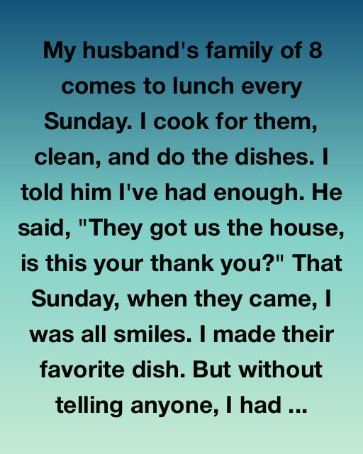 For three years straight, every Sunday at noon, the Peterson household became the hub of family tradition. Without fail, eight people arrived at the door—my husband’s parents, his siblings, their children—hungry, chatty, and expectant.
