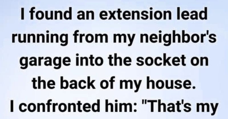 An orange extension cord stretched across my lawn like a neon path, running straight from my neighbor’s garage into my outlet on the back wall of the house. I paused, unsure what to think. Maybe it was a temporary thing, I reasoned. Maybe they’d plugged it in and forgotten. But as I traced it more closely, it became clear the connection had been made intentionally—without even asking me. For a moment, I felt puzzled rather than annoyed—we’d always gotten along well.