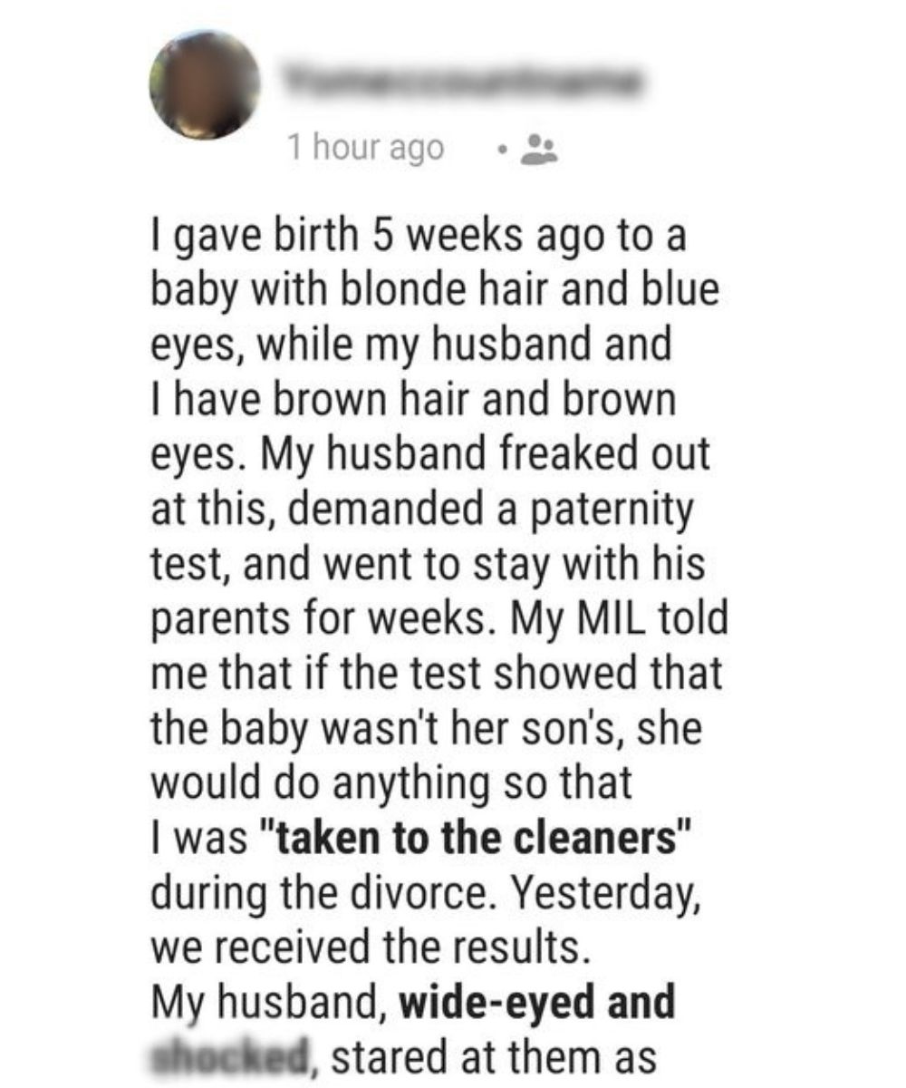 Our baby girl was beautiful — soft blonde hair, blue eyes, skin as fair as porcelain. She didn’t look like either of us. Both my husband and I have dark hair, olive skin, and brown eyes. I saw the flicker of uncertainty on his face before he even said a word.